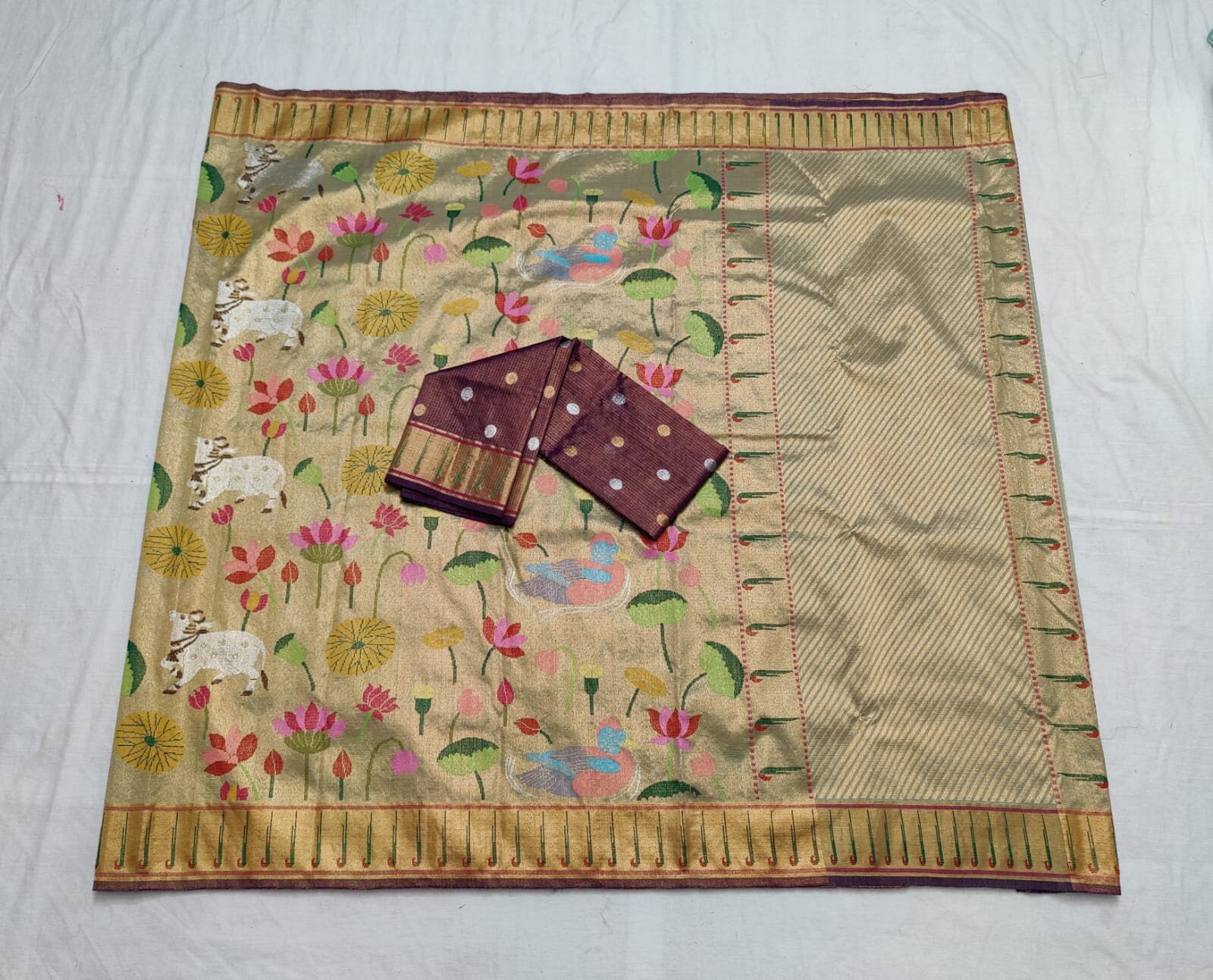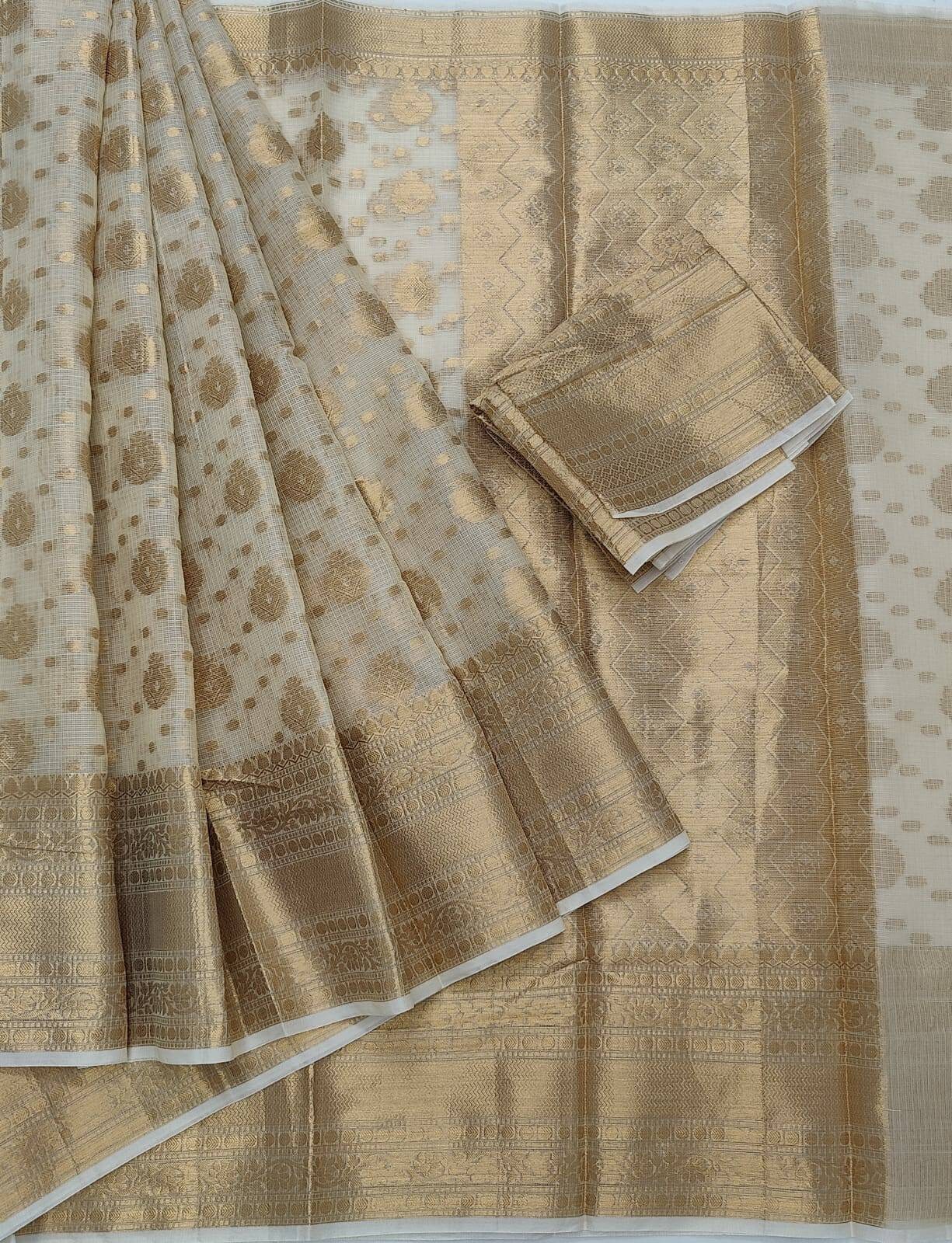Buy Pure Zari Kota Sarees online from The Weaves Art at the best price. Check out pure silk Zari kota doria sarees Filter. Festive wear traditional light beige single color pure kota tissue.